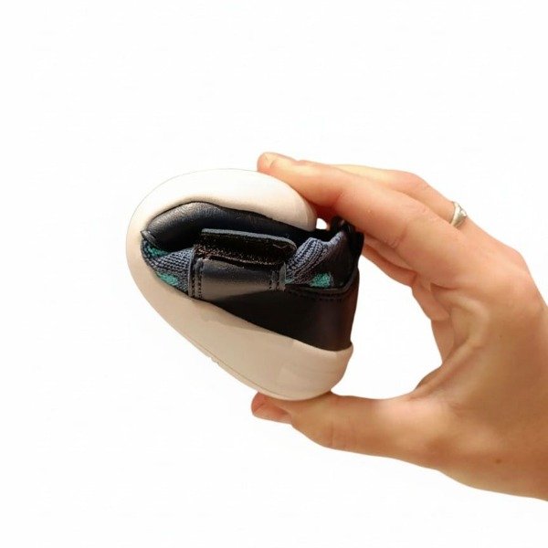 Suela super flexible y ancha: permite que los pies se muevan naturalmente y favorece el equilibrio.